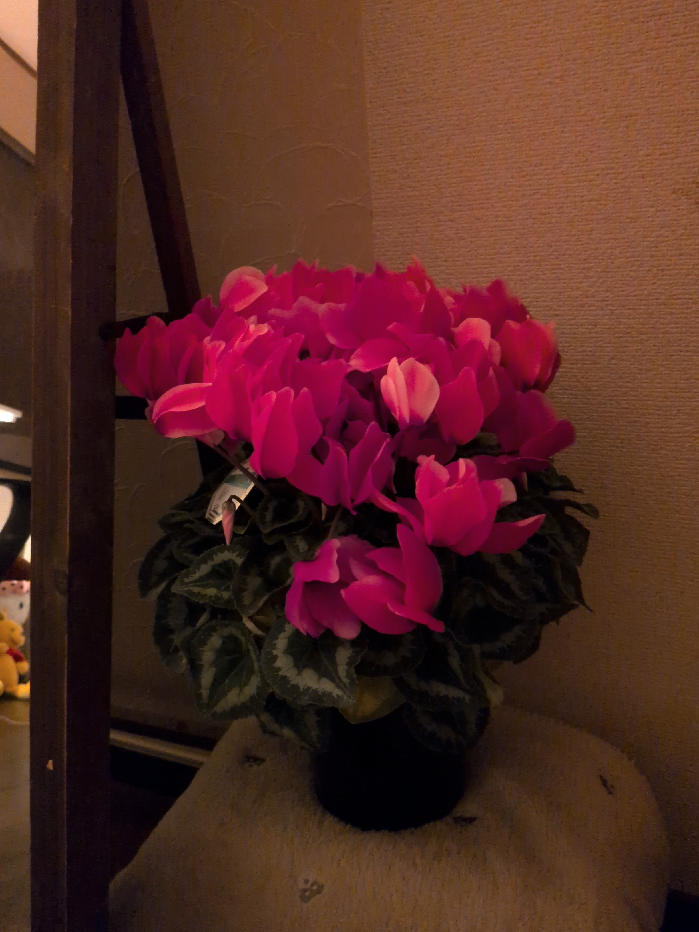 今、自分で机をペンで。