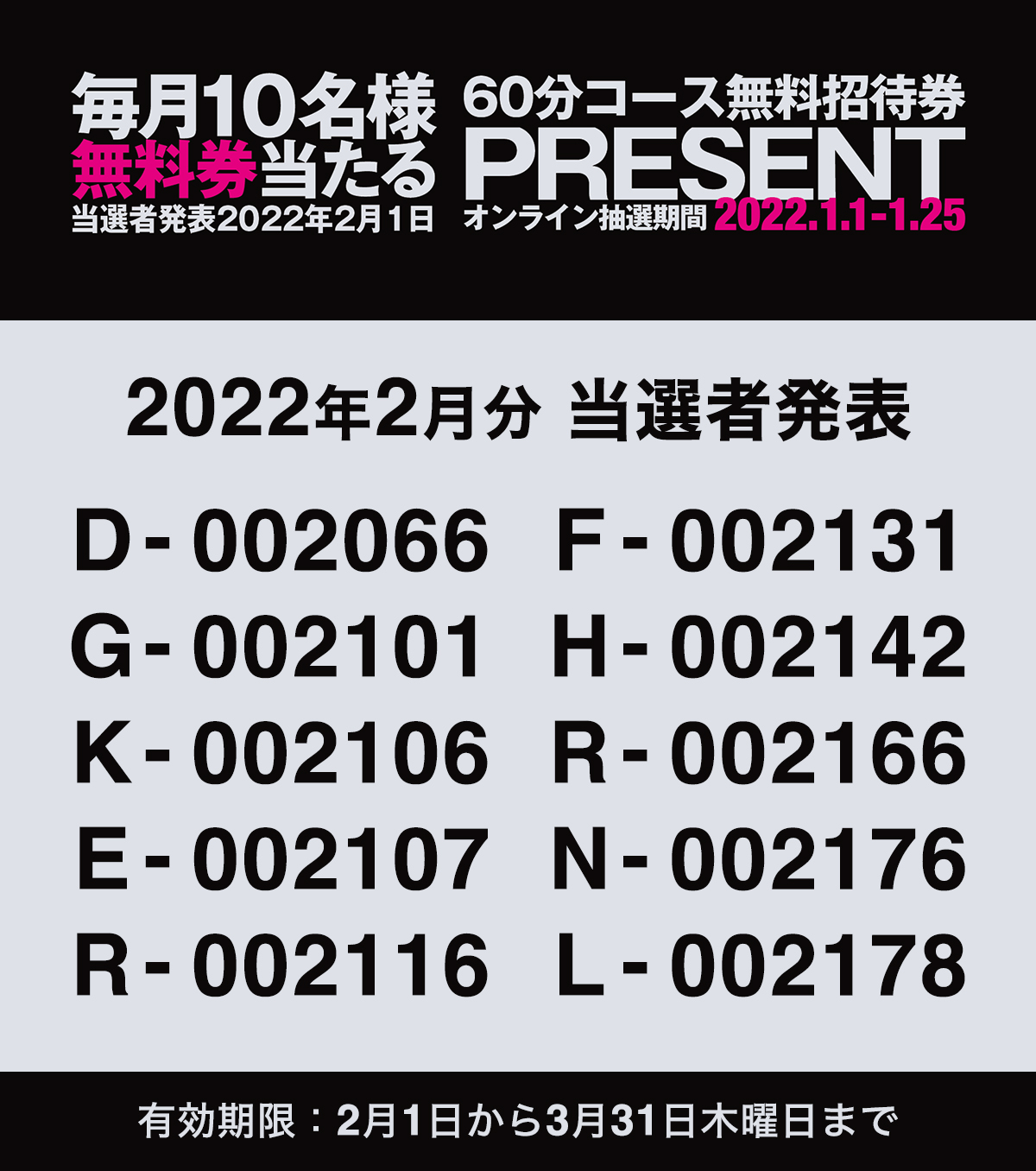 さて、1月当選発表となりました無料招待券!